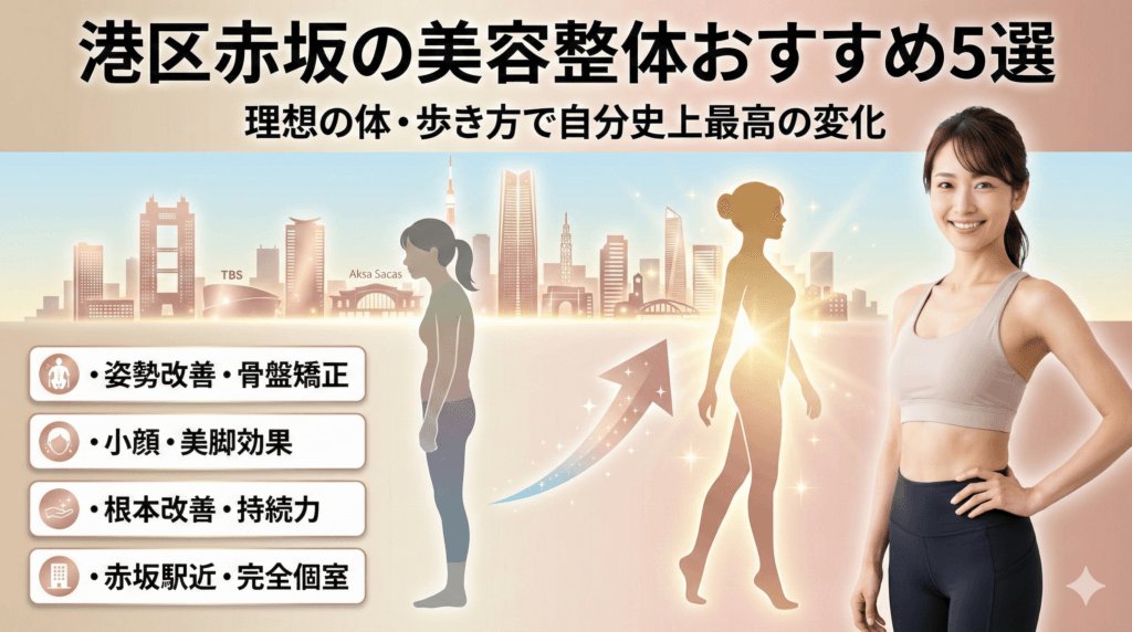 「小顔になりたい」「肩幅や姿勢を整えたい」—そんな願いを、港区赤坂で現実に近づけませんか。赤坂・赤坂見附・溜池山王は3駅合わせて1日あたり約30万人以上が利用するエリアで、仕事帰りに通いやすいサロンが集まっています。写真や計測で変化を確認できるお店なら、フェイスラインや骨盤幅の推移も客観的に把握できます。