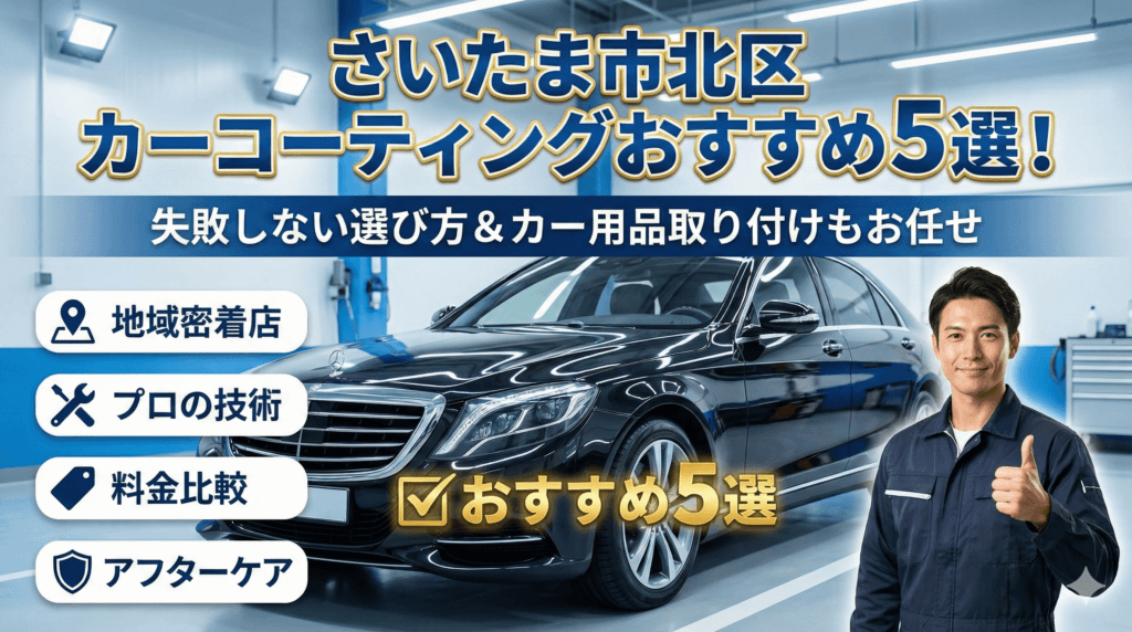 さいたま市北区でカーコーティングを検討する方へ、情報収集から比較検討、購入行動までを一気通貫で把握できるように整理します。店舗名や価格は特定店を断定せず、モデルケースとして扱います。選び方の軸は、被膜の種類や耐久、下地処理の丁寧さ、予約の取りやすさです。カーコーティングおすすめを見極める際は、塗装面の状態と使用環境を必ず確認し、ガラスコーティングやセラミックコーティングなど種類別の効果を比較します。DIY派はカーコーティング自分で行う前に下地の研磨や脱脂を理解し、ムラや持続低下のリスクを把握すると安心です。専門店はメニューと作業時間、術後のメンテナンス体制を確認し、迷ったら耐久とコストのバランスで選ぶのが実用的です。