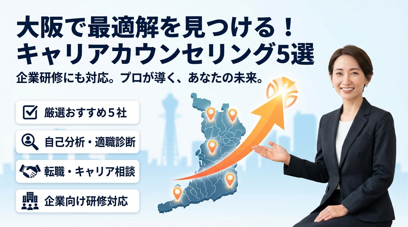 本記事では、大阪で利用できる転職エージェント、有料キャリアカウンセリング、公的支援サービスを種類別×属性別に整理し、若手や女性、HSP気質の方がどこにどう相談すべきかを具体化します。そのうえで「おすすめサロン5選」の前に、ビジネスモデルから生まれるバイアス、オンラインと対面の使い分け、企業研修レベルで未来を変える相談の受け方まで徹底的に解説します。キャリアカウンセリングで何を話せばいいか、初回面談でどんな質問をするかまで台本レベルで用意しているので、「大阪で最適解を見つける」ための実務的な道筋が、この導線ひとつで手に入ります。