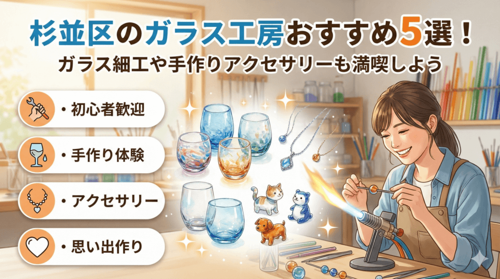 ガラスが割れた、すぐ直したい。せっかくなら週末に吹きガラスも体験してみたい——杉並区でその両方を叶えたい方へ。区内には、即日の交換・修理に対応する事業者や、初心者歓迎の体験メニューを用意する工房が揃っています。国の統計でも製造関連の体験需要は年々伸びており、杉並でも家族やカップル利用が増えています。
