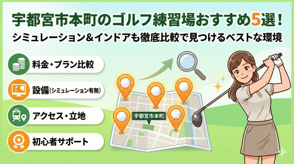 宇都宮市本町で「どの練習場が自分に合うのか分からない」「仕事帰りに通える場所を知りたい」という声は少なくありません。打ち放題の有無、24時間対応、弾道測定器の精度、駐車台数や最寄り駅からの距離など、選ぶ基準が多くて迷いやすいのが実情です。通いやすさと上達効率を両立するための判断軸を、数字で整理してご案内します。