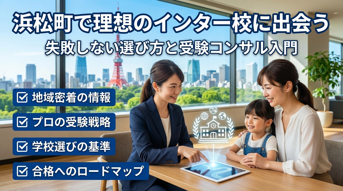 本記事では、浜松町駅で理想の学校に出会うインターナショナルスクール受験コンサルティングという視点から、受験のタイムライン、プリスクールと日本の幼稚園出身で異なる準備、コンサルを使うべきかどうかの線引き、アクセス込みのスクール・教室比較、7つの判断軸、典型トラブルの回避法までを一気通貫で整理します。ランキングや口コミ、広告記事に振り回されず、「どこがいいか」を短時間で決めるための実務的な基準と90日プランまで手に入れていただく設計です。この記事を読み切れば、浜松町駅から始めるインターナショナルスクール受験で、後戻りコストとミスマッチのリスクを最小限に抑えられます。
