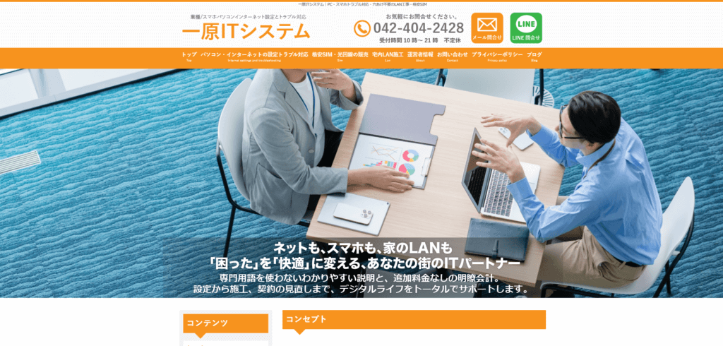 特徴東村山市で通信のことなら、「一原ITシステム」にお任せください。 東京都東村山市にある「一原ITシステム」は、東村山駅やイトーヨーカドー東村山店からもアクセスしやすい地域密着型の通信代理店です。パソコン・スマートフォンの設定からネット工事、ネット設定まで、幅広いITサポートを提供する出張型の電気通信サービス事業者として、地域の皆様に信頼されています。 東村山市を拠点に、パソコンやインターネットの設定・トラブル解決・ネットワーク構築など、困ったときにすぐ頼れる通信サポートをお届けいたします。23時以降でも対応は可能です(深夜料金有)。お仕事で帰りが遅い方や、急なトラブルでお困りの方にも柔軟に対応いたします。 訪問対応エリアは東村山・小平・西東京を中心に、練馬区・中野区・三鷹・府中・新座など広範囲にわたります。ご自宅・オフィス・店舗などへ直接お伺いし、パソコンの初期設定(7,980円)、Wi-Fi・ルーター設定、プリンターや周辺機器の接続トラブルまで幅広くサポートしています。 難しい専門用語を使わず、どなたにもわかりやすく丁寧にご案内するため、ご高齢の方やパソコン初心者のお客様から「説明がやさしい」「安心して任せられる」というお声を多数いただいています。 また、遠隔サポートにも対応しており、「すぐに見てほしい」「訪問を待てない」というお急ぎのご依頼にも柔軟に対応可能です。 小規模事業者様や個人事務所向けには、定期メンテナンスやネットワーク管理、データバックアップなどのIT環境整備プランもご用意しており、継続的な安心をお届けしています。 東村山市で通信についてお困りの方は、ぜひ「一原ITシステム」へ。