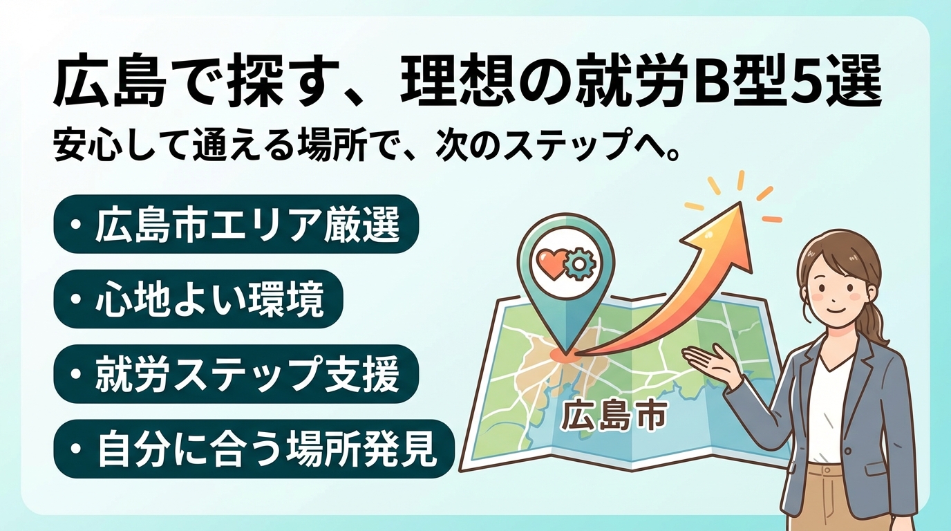 本記事では、広島市のB型作業所全体像を整理したうえで、「心地よく通える」を作業ペース、仕事内容、精神的負担、生活リズムという具体的な条件に分解し、人気施設の特徴をプロの目線で比較します。さらに、「工賃重視で体調が崩れる」「人間関係で続かない」など典型的な失敗パターンを前提に、見学前に準備すべき質問リストと比較表テンプレートを提示します。就労対象が発達障がいでも精神障害でも、パソコン作業や清掃など仕事のスタイルが違っても、「自分はどこなら継続できるのか」を具体的に絞り込める実務的な情報だけに絞りました。この記事を読み切るかどうかで、これから数年の通所のしやすさが大きく変わります。