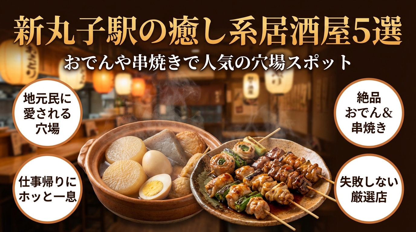 本記事では、新丸子駅周辺の居酒屋を網羅するのではなく、ホッと一息つけるかどうかを軸に、焼き鳥やおでんの老舗から個室チェーンまでを再整理します。騒がしさと席の距離感、カウンターか個室か、予算3,000円台と5,000円台でどう雰囲気が変わるかを、口コミと写真、Googleマップと予約サイトの情報から読み解く具体的な手順まで解説します。さらに、一人飲み会社員向け、女性一人、少人数グループ、昼飲みや深夜利用といったシーン別に「今夜の正解」を最短で選べるよう、新丸子と武蔵小杉・元住吉・自由が丘の違いも踏まえて案内します。この記事を読み進めれば、「なんとなく人気だから」ではなく「自分のコンディションと目的に合う一軒」を迷わず選べるようになります。