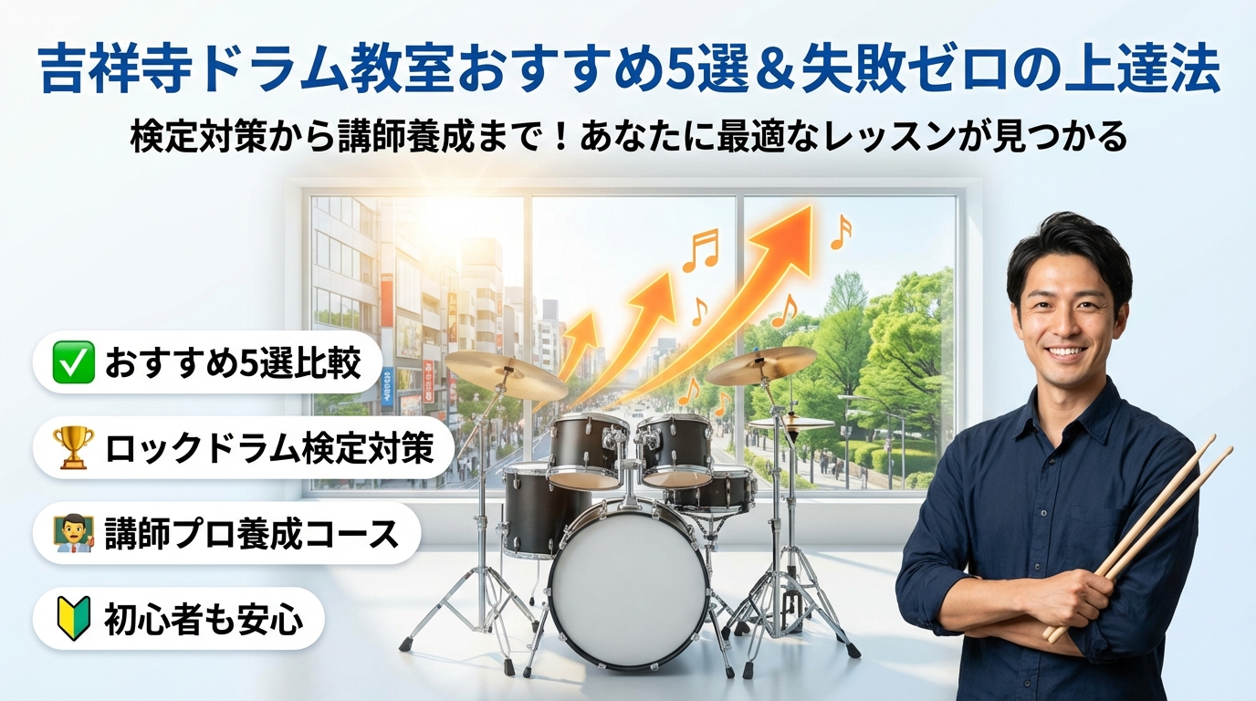 本ガイドでは、吉祥寺駅からのアクセスや夜間枠、スタジオの混雑傾向まで、続けやすさに直結する指標を整理。さらに、初月と3か月の実費比較、講師の実演動画・指導歴のチェック法、初心者が1曲を叩き切る最短ルートまで具体例で解説します。