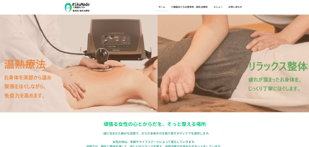 | メニュー | 鍼灸治療、整体・固定、温熱療法、メディカルアロマ、体質改善、自律神経調整 |