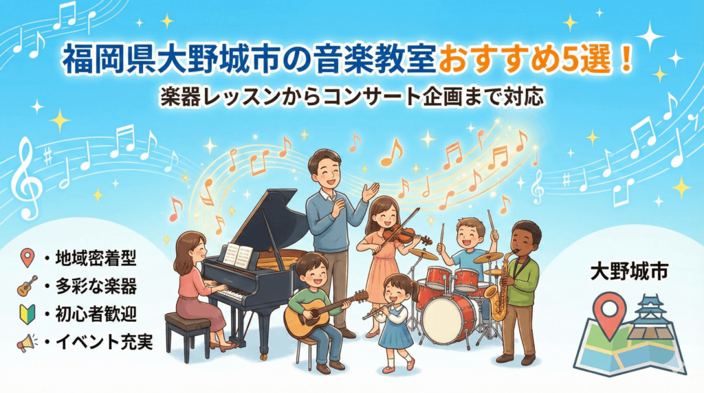 福岡県大野城市の駅近エリアは通いやすく、音楽教室近くで探すと継続率が上がります。大人は無理のないペース配分、子供は家庭での練習時間の確保が成功の鍵です。