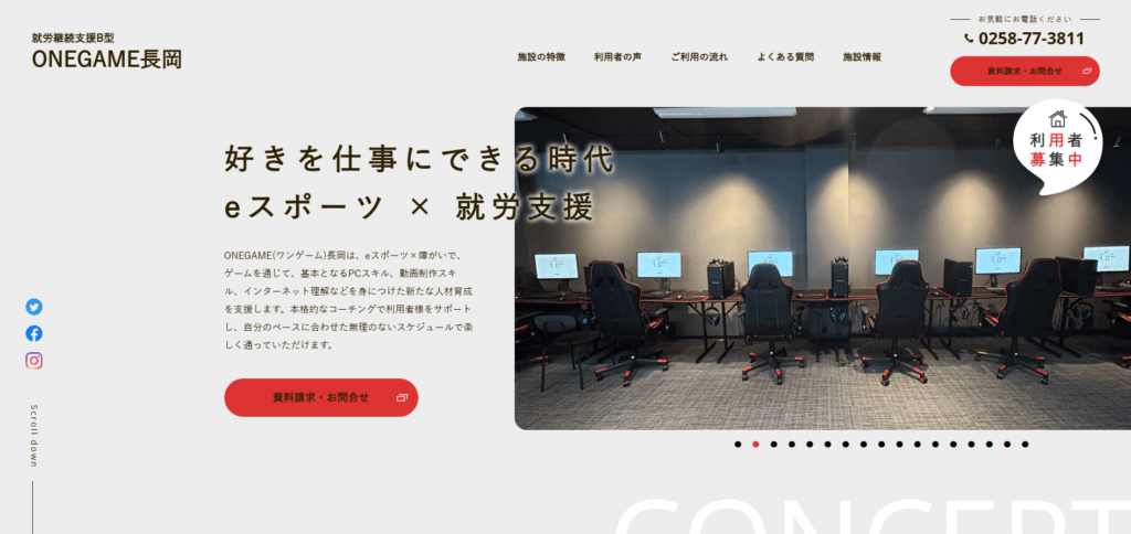 特徴ONEGAME(ワンゲーム)長岡は、eスポーツを活用した就労継続支援B型事業所です。ゲームが好きな方や、障がいがあり一般就労に不安をお持ちの方が、楽しみながらPCスキル・動画制作・インターネットリテラシーなどを身につけ、仕事につながる力を育める環境をご用意しています。