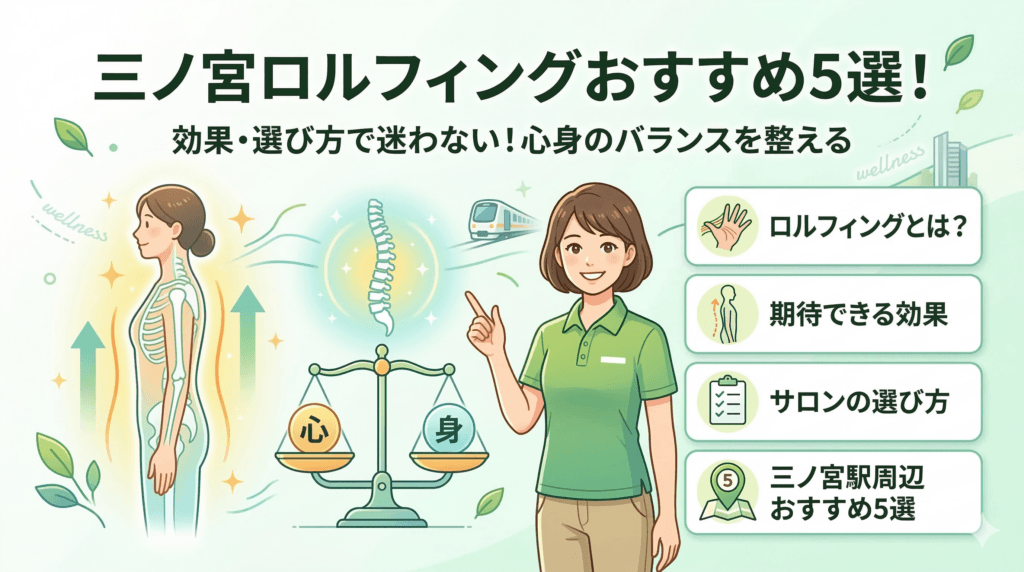 三ノ宮駅周辺で「痩身エステ 神戸 安い」「三宮 マッサージ 強い」と検索し続けても、肩こりや自律神経の乱れ、不眠がそのままなら、すでに見えない損失が出ています。目先のキャンペーンや口コミ件数に振り回されるほど、時間もお金も削られ、肝心の心身のバランスは整いません。結論から言えば、三ノ宮駅で本気で整えたい人は、ロルフィングを含むボディワークを「駅からの動線」「戻りにくさ」「メンタルへの影響」で選び直す必要があります。