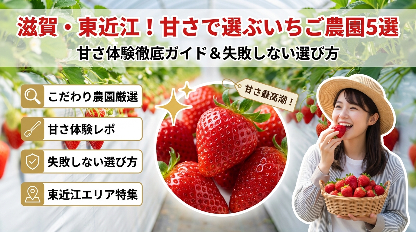 滋賀県東近江市はいちごぷらんとやT-BERRY-FARM、小杉豊農園、藤澤いちご園、ベジタブルガーデンなど、甘さにこだわるいちご農園が集中するいちご狩りの激戦区です。ただ、「滋賀 いちご狩り 人気」「安い 食べ放題」だけで選ぶと、シーズンや時間帯、予約枠の設計しだいで「思ったほど甘くない」「子どもが摘みづらい」という外れ体験になりやすいのが現実です。
