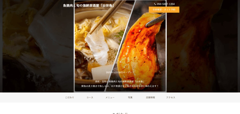 特徴高松で居酒屋をお探しなら、全国でも珍しい魚を富士山の溶岩プレートで焼き上げる魚焼肉と旬の海鮮居酒屋 出世魚へ。香川県高松市瓦町、瓦町駅から徒歩5分に位置する当店は、瀬戸内の新鮮な魚介と魚焼肉が自慢の海鮮居酒屋です。名物は、マグロの赤身・中トロ・希少部位や瀬戸内の旬の魚を富士山の溶岩プレートで焼き上げる魚焼肉。魚の旨みと脂を閉じ込め、香ばしくふっくらとした仕上がりで、刺身とは違う味わいをご体験いただけます。冬季限定のオリーブハマチを使った刺身・しゃぶしゃぶ・焼肉・出汁茶漬けもご用意しており、接待や会食、記念日利用にもぴったりです。出汁茶漬けやだし巻き卵など出汁を使った一品料理も人気で、日本酒や焼酎との相性も抜群。店内にはハンガーラックを完備しているため、焼き物中心でも衣類に煙の匂いがつきにくく、仕事帰りやデート、接待でも安心してご利用いただけます。トイレの鏡は明るく照らされ、化粧直しがしやすい設計です。高松で落ち着いて魚を楽しめる居酒屋として、遅めの時間帯でもしっかりお食事を楽しめるため、二軒目利用にもおすすめ。宴会や各種お集まりにもご利用いただけます。木・金・土は0:00〜2:30まで出汁茶漬け専門店として深夜営業しており、飲み会後の〆や夜食として好評です。 Looking for an izakaya in Takamatsu? Shusseuwo offers rare grilled fish on volcanic plates, fresh Setouchi seafood, and dashi dishes. 5 min from Kawaramachi Station. Open until 2:30 AM Thu-Sat for ochazuke.