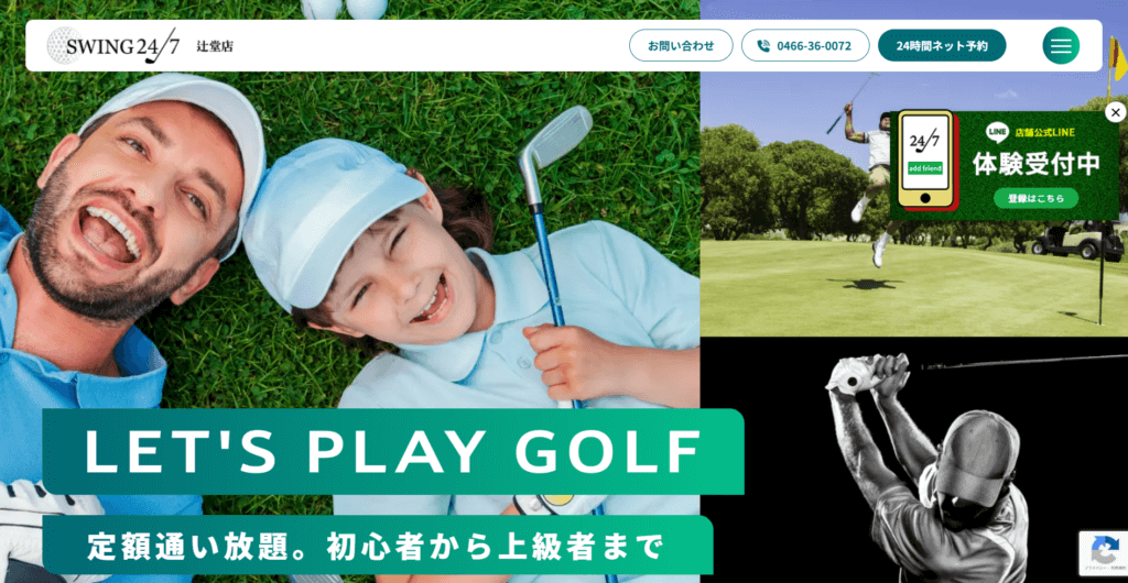 特徴藤沢市のインドアゴルフ練習場SWING24/7辻堂店はゴルフを、もっと自由に、愉しく!日本初のオールサービスインクルード型24時間365日営業の室内ゴルフ練習場です。最新のシミュレーションゴルフ機材を導入し、コース練習はもちろん、打ちっぱなし練習も毎月定額で通い放題となります。会員制のインドアゴルフ練習場 ・全打席、最新のゴルフシミュレーターを設置 ・打席予約はスマホからなので予約が取りやすい! 打ちっぱなし練習からコースを想定した練習まで初心者の方から上級者まで幅広くご利用いただけます。24時間営業なのでライフスタイルに合わせて練習可能 ・月会費の支払いのみで毎日1時間まで毎日練習し放題 ・無料レンタルクラブ&シューズ完備。手ぶらでOK ・セキュリティー(会員のみ入室可能、防犯カメラと非常通報装置)完備で女性も安心してご利用いただけます♪