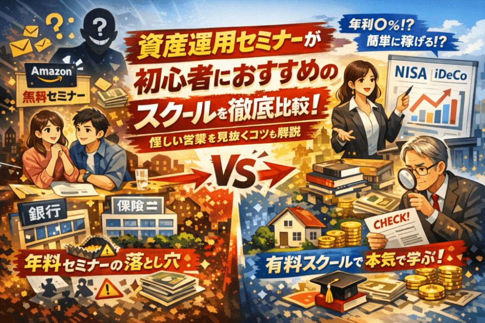 本記事では、初心者向け資産運用セミナーと投資スクールを、料金やランキングではなく、銀行・証券・保険・不動産・独立系という運営主体の収益構造まで分解し、無料と有料のどちらが合理的かをあなたの状況別に線引きします。年利◯%保証や誰でも簡単といった危険サイン、アマギフ進呈セミナーの裏側、オンラインと東京・大阪など対面の通いやすさのギャップ、つみたてNISAやiDeCoを軸にした本当に必要なカリキュラムも、現場目線で整理しました。