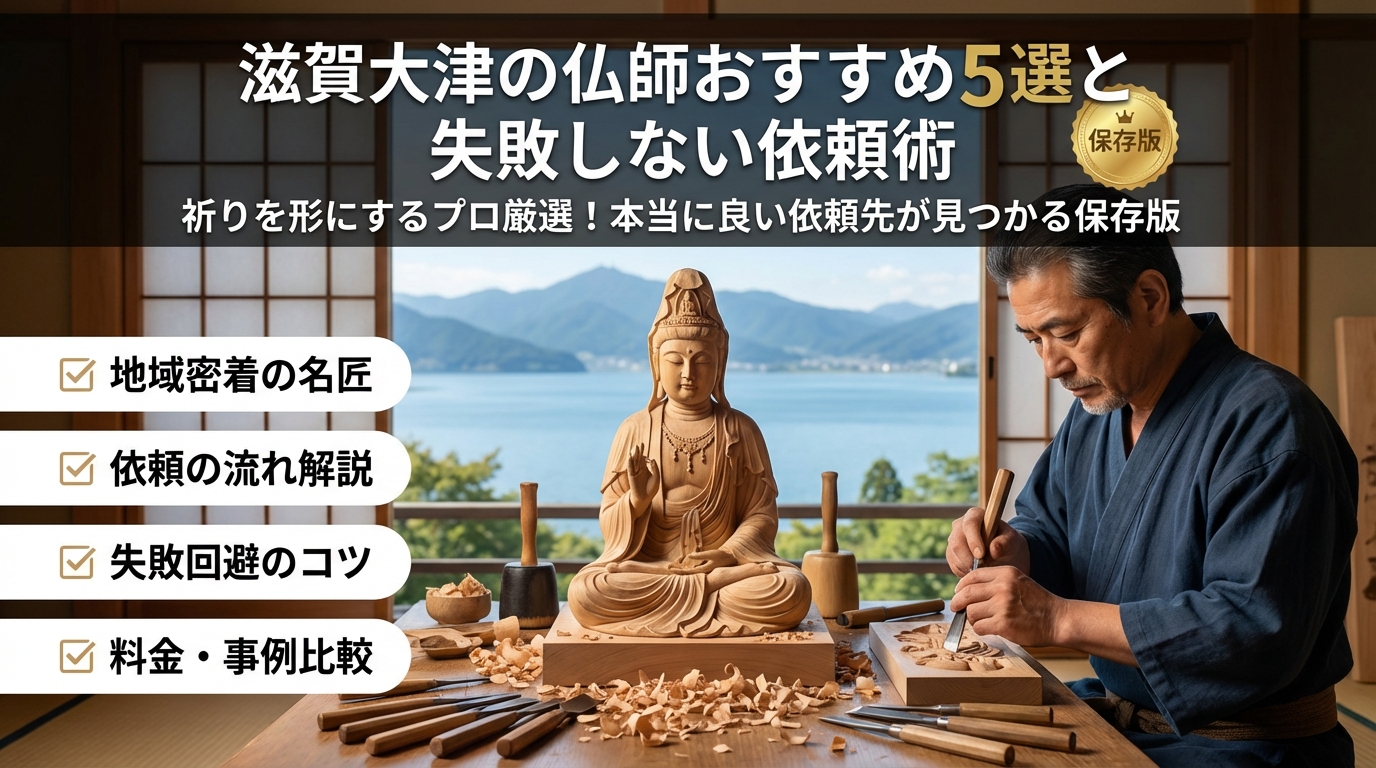 本記事では、滋賀県大津市と湖西エリアで活動する仏師や仏像彫刻所を、「制作」と「修復」の得意分野別に整理し、仏像や供養塔、位牌まで含めた現実的な選択肢を洗い出します。そのうえで、実際に現場で起きたトラブル事例をもとに、最初の打ち合わせで誰が同席すべきか、どこを触らず残すべきか、どの質問を投げればその仏師の力量とスタンスが見抜けるかを、チェックリストとして提示します。観仏ファンが国宝クラスの仏像で培った眼差しを、日々向き合う「優しい仏像」にどう落とし込むかも具体的に示します。大津で祈りを形にする一歩を誤らないために、このガイドを読み進めてください。