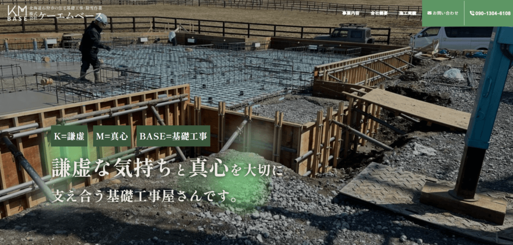 | 特徴 | 株式会社ケーエムベースは、「謙虚さ」と「真心」を大切に、北海道石狩市を拠点として住宅基礎工事および除雪作業を行っております。代表は30年以上の住宅基礎工事の経験を持ち、北海道の気候や土地に適した確かな技術で、安全で長く安心して暮らせる住まいの基礎づくりを行っております。工事にあたっては、近隣へのご挨拶や丁寧な説明を徹底し、コミュニケーションを大切にしながら、まるで自分の家のように一棟一棟誠実に施工いたします。また、冬期には道路や住宅街、建築現場の除雪作業を通して、地域の皆様の安全な日常生活を力強く支えております。石狩市を中心に、北海道全域への対応が可能ですので、住宅基礎工事や除雪に関するご相談がございましたら、どうぞお気軽にお問い合わせください。今後も社員・協力会社とともに支え合いながら、多くの皆様に信頼される企業を目指してまいります。 |
