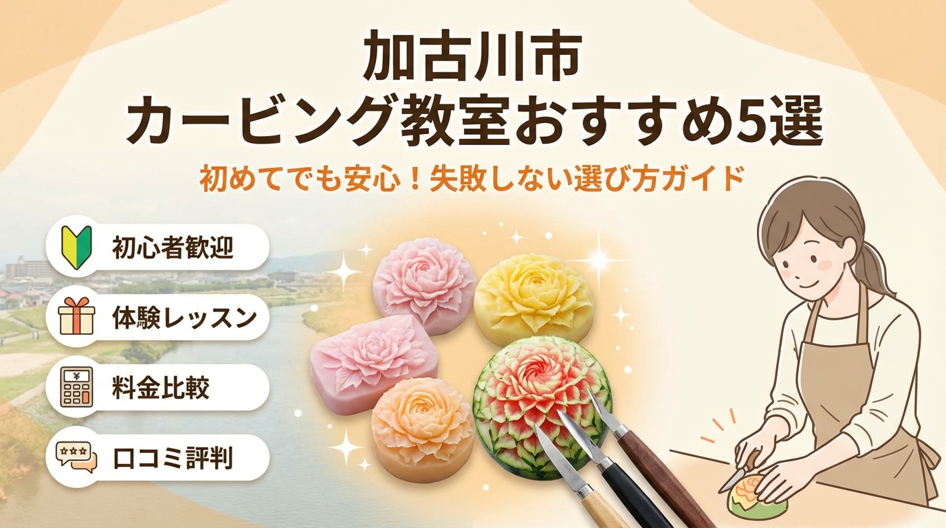 加古川市の小学校選びとカービング教室選びには、「雰囲気と安全性を数字以外の情報から見抜く」という共通点があります。本記事では、カービング教室を選ぶ際に、刃物使用時の安全説明、小学生参加のルール、少人数制かどうか、講師のサポート体制、子どもの飽きやすさへの配慮など、料金以外の7つのチェックポイントを重視するよう解説していますが、小学校についても同様に、教員やクラスの雰囲気、地域とのつながり、行事の内容、放課後の過ごし方、保護者との距離感などを、見学や学校公開、地域イベントを通じて確かめる姿勢が大切です。加古川市はカービングを含む体験型の講座やイベントが充実しているため、親子でそうした場に参加しながら、子どもの様子や興味関心を知り、その子に合う学区や学校環境を考える、という使い方もしやすいエリアです。教室選びの判断軸をそのまま「子どもの学び場選び」に応用することで、人気や偏った口コミに振り回されない、自分たち家族にとってのベストな選択がしやすくなります。