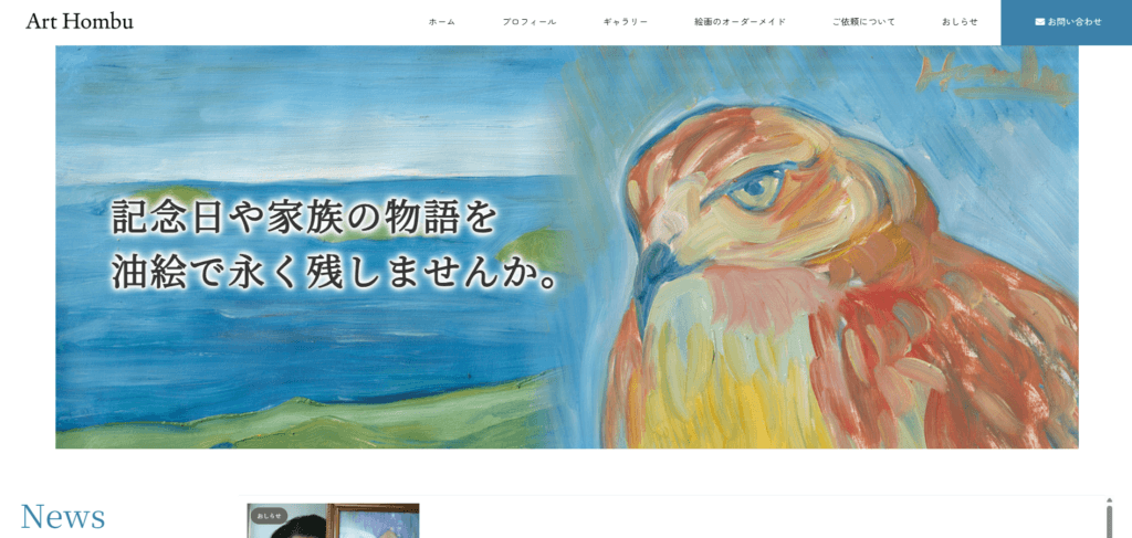 | 特徴 | アートホンブのホームページをご覧いただきありがとうございます。画家・本部琢己は、人物・動物・風景をモチーフに、「心がふっとやわらぐ絵」をテーマとした油絵作品を制作しております。日々の暮らしの中でそっと寄り添い、眺めるたびに温かい気持ちになれる一枚を、心を込めてお届けいたします。 家族写真やペットのお写真をもとにしたオーダーメイド制作では、丁寧にお話を伺いながら、世界にひとつだけの作品として仕上げてまいります。誕生日や記念日の贈り物、お子様の成長記念、結婚式のウェルカムボード、ペットの思い出の一枚など、さまざまなご用途に対応可能です。 また、ギャラリー掲載作品の販売も行っており、日本橋アートギャラリーおよびお問い合わせフォームよりご購入いただけます。どうぞごゆっくり作品をご覧いただき、特別な一枚と出会っていただけましたら幸いです。 |