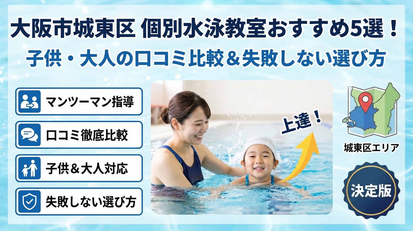 大阪にはスイミングやフィットネスクラブ、プール付きジムが数えきれないほどありますが、城東という生活圏で本当に選ぶべきなのは、「何人通わせているか」ではなく、「目の前の一人をどこまで見てくれるか」を公開情報と体験レッスンで示してくれる教室です。
