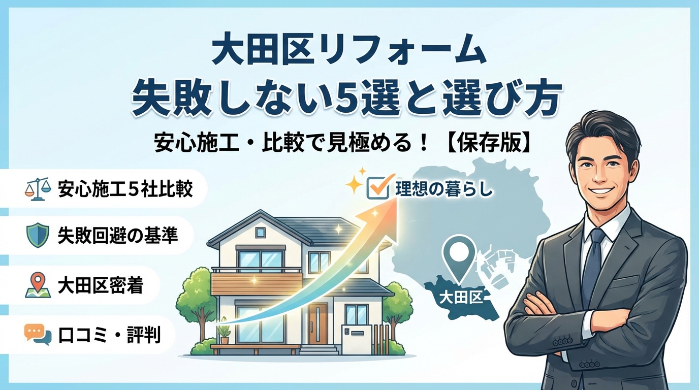 本記事では、大田区の戸建やマンションで起きがちな失敗事例を起点に、「安かったはずの工事がなぜ高くついたのか」「口コミのどこを読めば人柄や説明力が分かるのか」「大田区の助成金をきちんと活用できる会社は何が違うのか」を、マーケティングのプロの視点で分解します。そのうえで、地域密着の主要リフォーム会社の特徴と口コミ傾向を整理し、候補を3社まで絞り込む具体的な進め方と危険信号のチェックポイントを提示します。ランキングや評判だけで決める前に、この数分を投資するかどうかで、あなたの住まいとお金の守られ方ははっきり変わります。