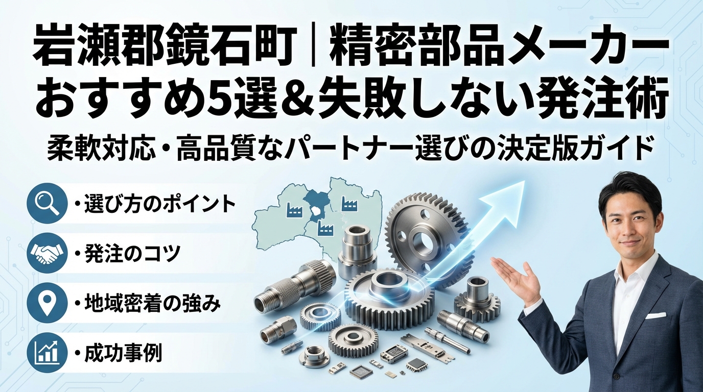 本記事では、「岩瀬郡鏡石町の柔軟に応える精密部品メーカーおすすめ5選」と題し、鏡石町および周辺の須賀川・郡山・西白河エリアから、真空成形トレーや難削材の精密加工、小ロット試作に強みを持つメーカーを5社ピックアップして紹介します。単に社名や設備一覧を並べるのではなく、工業団地ごとの得意分野、生産技術・購買が押さえるべき加工範囲や公差・測定機のスペック、事業再構築補助金から読み取れる最新設備投資の本気度、図面変更やトラブル発生時の対応事例などを踏まえ、「どの会社に、どの条件で任せれば失敗しないか」を具体的に整理します。また、発注担当がハマりやすい3つのワナや、工場見学で確認すべきライン・検査・物流・トレー運用のチェックリスト、メールや図面でメーカーの柔軟性を引き出すコミュニケーション術もあわせて紹介し、鏡石町で協力工場を探す際の実践的な判断材料を提供します。