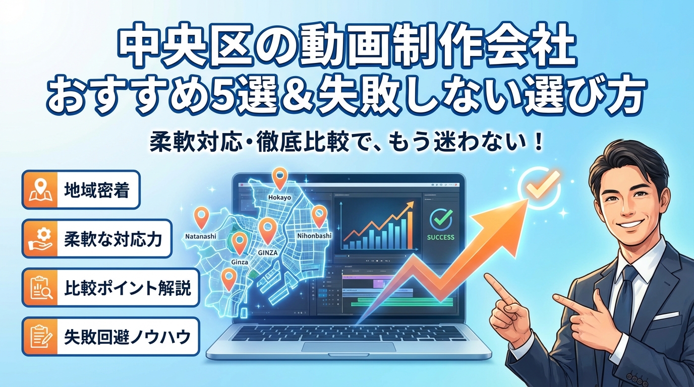 読み進めれば、中央区特有のオフィスビル撮影の落とし穴、見積りで確認すべき制作費用の内訳と隠れコスト、目的別に向いている制作会社のタイプ、SEOやMEO、SNSで動画を成果につなげる活用法まで、一度の発注で結果を出すための具体的な手順が手に入ります。